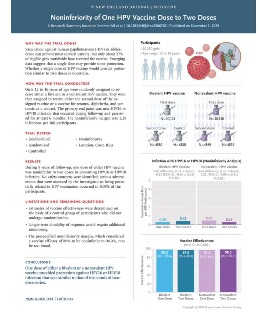 The shift toward single dose HPV vaccination represents a significant milestone in global public health. By expanding vaccine options, improving access and reaching millions more girls, the world is moving closer to eliminating cervical cancer as a public health threat. With sustained commitment, evidence-based policies and equitable vaccine distribution, the goal of protecting every girl from HPV -and preventing countless deaths -has never been more achievable.